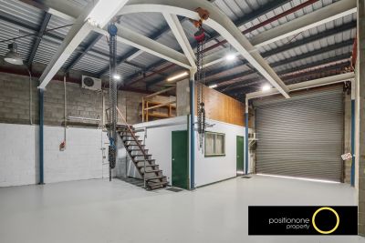 Features include: - 148sqm* warehouse and office - with 3 phase power Container-height roller door - Air-conditioned small office space – 2 Tonne Monorail Hoist - Lightweight mezzanine storage and Bathroom amenities - Allocated parking for 4 cars.